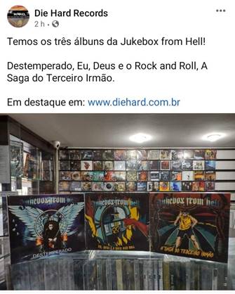 Desde o lançamento de seu terceiro álbum de estúdio no ano passado, o ótimo A Saga do Terceiro Irmão, a Jukebox From Hell vem vivendo um ótimo momento, consolidando o seu nome entre os principais do cenário nacional. Uma prova disso é que agora toda a sua discografia já se encontra sendo distribuída oficialmente pela principal loja voltada ao Rock e ao Heavy Metal no Brasil, a Die Hard, conforme anunciado pela própria loja em suas redes sociais. Destemperado (2017), Eu, Deus e o Rock and Roll (2019) e A Saga do Terceiro Irmão (2021) já se encontram disponíveis também no site da gravadora e os interessados em adquiri-los, podem acessá-lo.