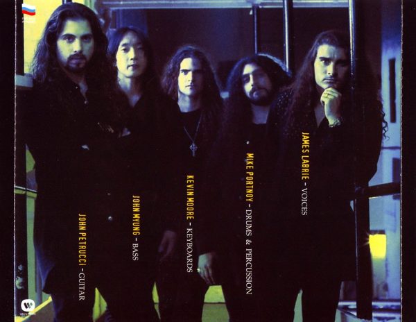 Dream Theater em 1994: John Petrucci (guitarra), John Myung (baixo), Kevin Moore (teclados), Mike Portnoy (bateria), James LaBrie (vocal)