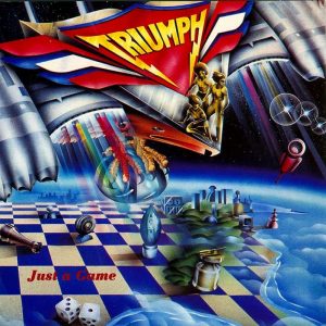 Esse foi o último álbum onde algum resquício de comparação com o Rush existiu. O Triumph enveredava pela linha hard oitentista com força, e passava a registrar clássicos hinos de arena, que levaram o nome do grupo às primeiras posições das paradas. O melhor LP da carreira da banda, que tem de tudo: AOR (“Movin’ On” e “Hold On”), blues (“Young Enough to Cry”), jazz (“Suitcase Blues”) e o forte apelo ao mercado americano, com os hards de “American Girls”, “Just a Game” e “Lay It on the Line”. Dessas três últimas, “Just a Game” e “Lay It on the Line” são as que possuem os melhores e mais marcantes refrões do grupo, preparados quase que nota por nota para arrancar a voz dos fãs nos lugares por onde a banda tocava. A minha dúvida até hoje é qual das duas é a melhor, assim como se a melhor do álbum é “Young Enough to Cry”, um blues veloz e sensacional cantado por Gil, contendo um belíssimo arranjo vocal, ou a maravilhosa e suave “Suitcase Blues”, com um show à parte de Rik tanto nos vocais quanto nas escalas jazzísticas. Obviamente, a junção das duas com uma garrafa de uísque é um convite para uma profunda noite de embriaguez. Rik também dá show em “Fantasy Serenade”, um complicado tema no violão clássico que só enaltece ainda mais as qualidades desse grande músico. A capa original gatefold de Just a Game formava um tabuleiro que servia para jogar xadrez ou damas, e uma tiragem limitada de peças de xadrez apresentando imagens relacionadas à cada faixa do álbum, sendo hoje uma relíquia. O álbum foi o primeiro disco de ouro da carreira do Triumph.