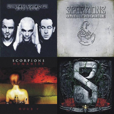 E por fim tem a fase mais comportada da banda que evita conflitos com o politicamemte correto e que geralmente sao pretas e com um scorpiao no meio. Baniram de vez a sensualiazaçao e é o periodo em que banda tem mais fama de ter produzido musica acustica pra tocar em barzinho e ter suas versoes transformadas em forró. 😂😂😂