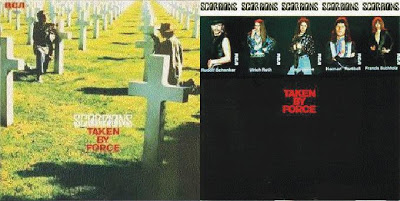Um pouco cansado das polêmicas sexuais, o Scorpions resolveu adentrar em questões religiosas. Muitos grupos já usaram imagens de cemitérios em suas capas, mas na época isso não era muito comum. A de Taken By Force (1977), com a imagem de um duelo no meio do cemitério católico não foi muito bem assimilada pela população conservadora norte-americana. Muitos dizem que a imagem sugeria a profanação de um local sagrado. Outros se sentiram mal pelo fato de que a Guerra do Vietnã, que havia acabado dois anos antes, poderia estar sendo representada pelas duas crianças atirando uma na outra, e o cemitério representaria a morte, fatalidade que acometeu muitos norte-americanos no país asiático. A capa alternativa de Taken By Force é algo pavoroso. Simplesmente utilizaram a contracapa e trocaram o título das faixas pelo nome da banda e do álbum. Horrível!!! Demorei muito tempo para comprar esse disco até perceber que não conseguiria a capa original.
