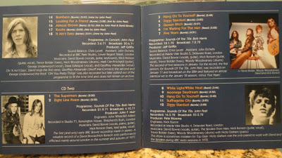 O CD 1 é complementado pela apresentação no programa “In Concert”, de John Peel, uma das primeiras apresentações da recém forma Spiders from Mars, tendo Mick Ronson (guitarras), Trevor Bolder (baixo) e Mick Woodmansey (bateria). Participa também Mark Carr-Pritchard (guitarra). Cinco canções fazem parte desse show: as inéditas “Bombers” e “Looking for a Friend”, a cover para “Almost Grown” (de Chuck Berry), além de “Kooks” (presente no álbum Hunky Dory, de 1971) e a cover para “It Ain’t Easy”, de Ron Davies (que sairia depois em The Rise and Fall of Ziggy Stardust and The Spiders from Mars). Essa última, conta com as vozes de George Underwood, Dana Gillespie e Geoffrey Alexander interpretando algumas estrofes. As cinco músicas já são amostra do poderoso nível e estardalhaço que Bowie atingiria em seu quinto álbum.