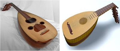 | O Oud (esquerda) e o Alaúde (direita). A principal diferença é a inclusão de trastes no segundo |
