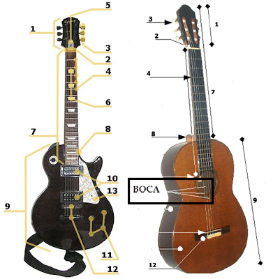 | Características entre guitarras, com a acústica tendo a Boca como fonte ressonante |