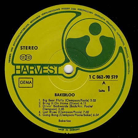Muitos artistas underground da época haviam assinado com outros selos da EMI. Pink Floyd e Pretty Things estavam na Columbia. Já Pete Brown’s Battered Ornaments, Climax Chicago Blues Band, Barclay James Harvest e Deep Purple gravaram pelo selo Parlophone. O plano era que todos migrassem para um novo selo com uma imagem mais coerente. Assim nasceu a Harvest. O selo foi inaugurado em julho de 1969 com o lançamento do LP Book Of Taliesyn (Deep Purple). Pelos próximos cinco anos, a Harvest lançou alguns álbuns clássicos. Muitos dos quais valendo muito no mercado dos colecionadores. Um deles é Bakerloo.