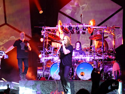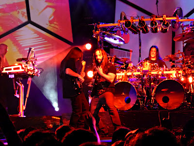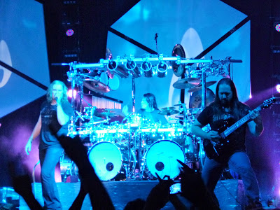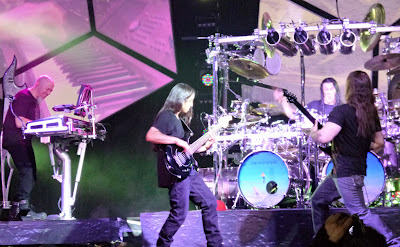 Com um atraso de apenas dez minutos, a intro “Dream is Collapsing” (acompanhada de um vídeo com uma animação onde os membros do grupo eram os personagens principais) começou a rolar no sistema de som e “Bridges in the Sky” iniciou os trabalhos, como nos outros shows da turnê. Logo ficava claro que não era a mesma banda que eu havia visto dois anos atrás. Como o novo baterista não chama os holofotes para si (o que ocorria com Portnoy), estes acabam indo para o vocalista James LaBrie que assume bem a função de realizar a conexão entre a banda e o público, mas continua a se ausentar do palco nos trechos instrumentais mais longos, como sempre fez em sua carreira. Nestes momentos, com o baixista John Myung e o guitarrista John Petrucci parados como estátuas, Mangini concentrado em sua enorme e impressionante bateria, e Jordan Rudess girando seu teclado para lá e para cá, a parte de performance do grupo cai muito (coisa que antes era compensada pela intensa presença de palco do antigo baterista). Apesar da diferença estar em apenas um membro do grupo, esta é notável, e chega a causar um certo incômodo. O grupo parecia menos espontâneo em cena, mais preocupado em tocar do que em ‘agitar”.