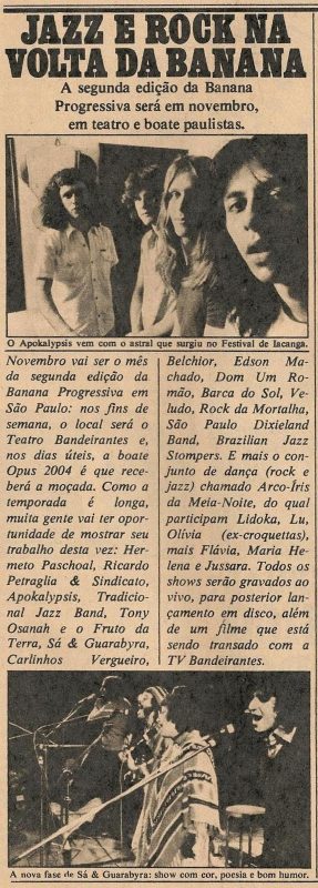 Em um ano, de novembro de 74 ao final de 75, o Apokalypsis marcou presença em quase todos os eventos emblemáticos e figurou no primeiro time com seu rock afro-brasileiro. Também participamos das duas edições do Festival Banana Progressyva no teatro da GV e no Opus 2004 respectivamente. Hoje promovemos, com os principais artistas da época, shows do Movimento 70 de Novo para resgatar o que fizemos e o que continuamos criando na cena do Rock Brasileiro. Para béns Ronaldo pelos artigos e obrigado pelo destaque.