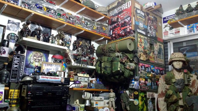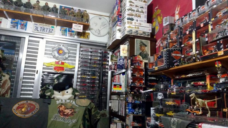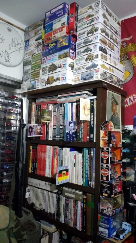 Coleciono várias outras coisas, não relacionados à musica, o que deixa meu quarto com uma cara de loja…rsrsrssrs. Gosto de miniaturas prontas, de veículos, motos em várias escalas e também monto miniaturas em plástico. Veículos militares da segunda guerra, alemães e americanos. Também coleciono militaria em geral, fardamentos, equipamentos, tendo inclusive um manequim fardado que o chamo de guardião de minhas coisas… rsrsrs… Livros, muitos livros sobre a segunda guerra, até para a referencia para minhas montagens das miniaturas. Revistas de carros e motos, graphic novels e meus brinquedos antigos como Forte Apache, Falcon… Apesar disto tudo, não me considero acumulador. Pelo menos está tudo em ordem :).