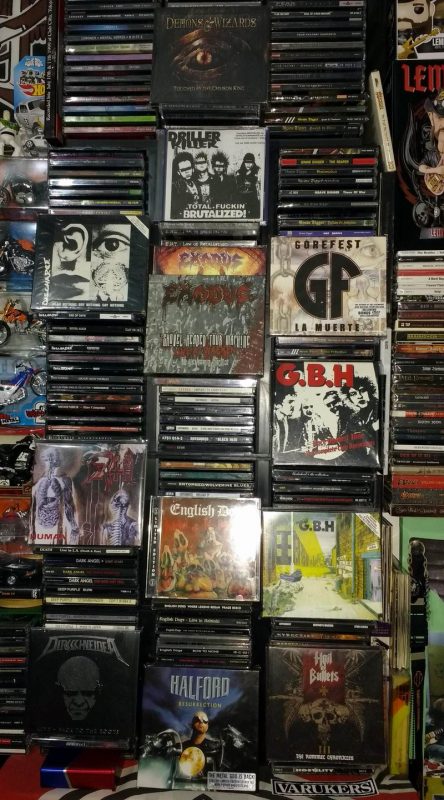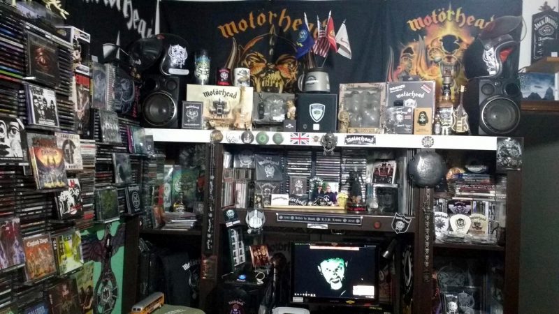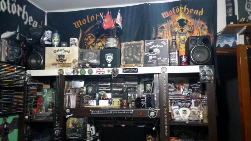 Motörhead faço questão de abordar todas as mídias lançadas como LP, CD, boxes, singles, promos, K7, DVD, VHS, livros e toda a memorabília a volta disponível. Não tenho certeza dos números, mas passa tranquilamente de mais de 2500 itens. A coleção de outras bandas, onde foco somente em CDs e DVDs, deve ficar em volta de uns 1700 itens. Ainda devo ter por volta de uns 200 LPs de bandas diversas que por motivo emocional, nunca me desfiz, o que agradeço hoje, ainda mais com o revival do LP.