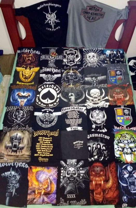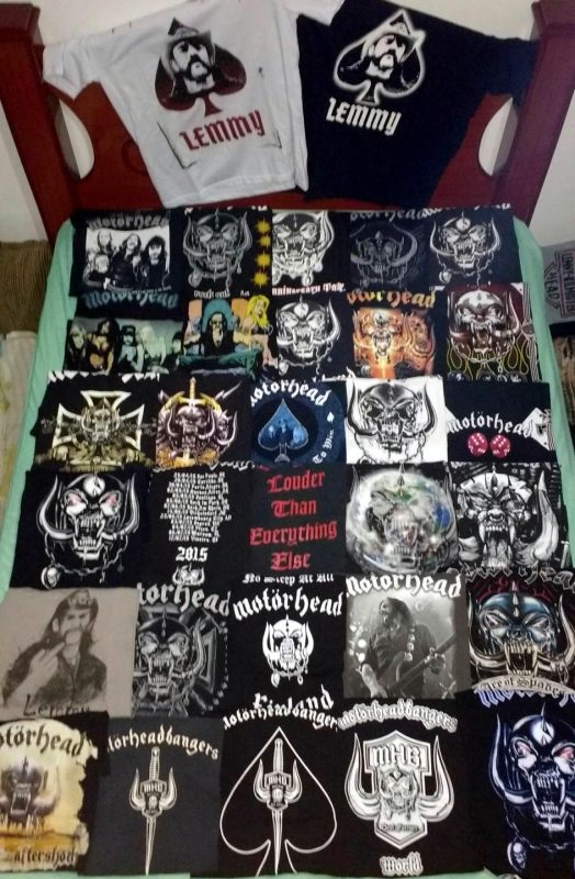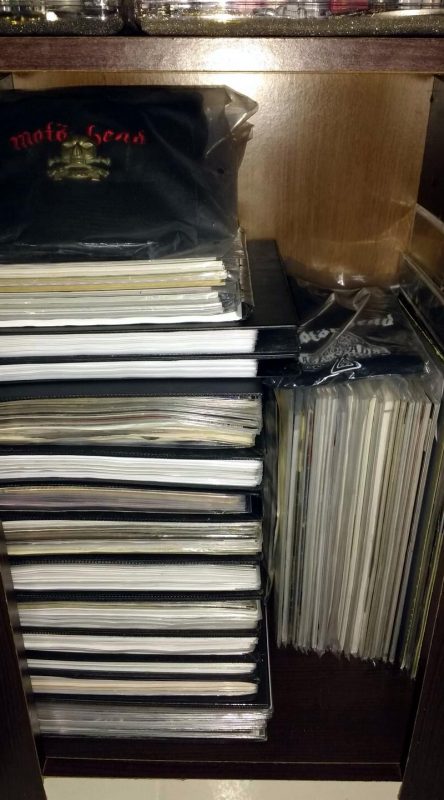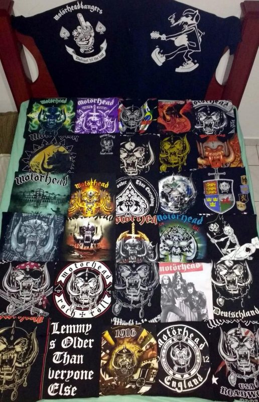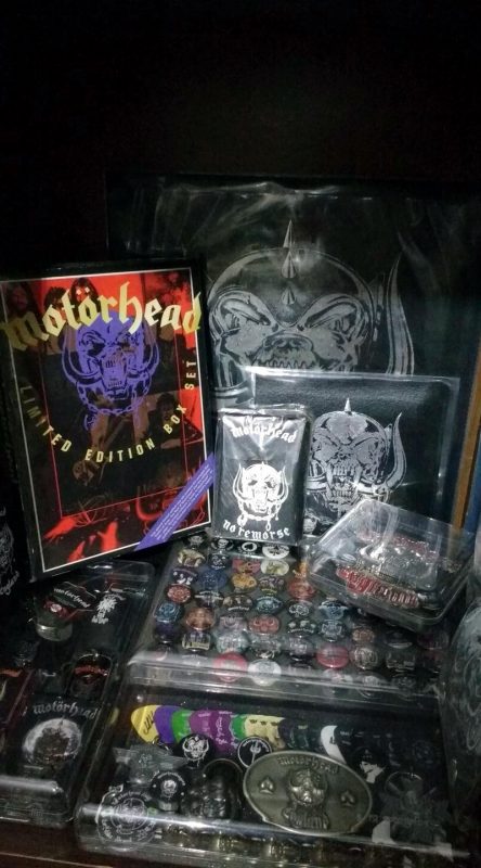 Antes da internet, a minha coleção era formada meramente pelos LPs lançados no Brasil mais as revistas, posters, patches, buttons e camisetas. O grande salto de minha coleção se deu quando morei na Califórnia por 3 anos a partir de 2001. Foi lá que descobri o eBay e PayPal, sem contar as lojas físicas como a Streetlight Records, Rasputim Music, Tower e Virgin Records. Lançamentos em LPs do Motörhead geralmente restritos à Alemanha, em 1000 cópias, consegui graças a internet e a facilidade dos itens chegar nos EUA sem problemas com Receita Federal de lá. Os primeiros singles e também os lançamentos e usados achados nas lojas. Também descobri as k7s e trocentos outros ítens. Era e é algo realmente viciante. Foi nos EUA que também descobri o fórum oficial do Motörhead, no antigo site comandado pelo Ace Trump, onde fiz vários amigos que sumiram com o fim do fórum e reapareceram com o advento do Facebook e onde participo em algumas selecionadas comunidades sobre o Motörhead. Uma de Motörheadbangers, mas que não são associados, porque quem curte Motörhead, não deixa de ser um mhb e uma Motörheadbangers só de associados ao fã clube. As coleções de certos mhbs que acompanham a banda desde o primeiro show e tem membros que estiveram no Rondhouse London em 20 de julho de 75 são gigantescas. Os caras tiveram acesso ao merchandising na fase do trio clássico, então a comparação não é muito justa já que só tive acesso mesmo a itens gringos a partir de 2001. Mas levando em consideração que são só 16 anos comprando, o que muitos gringos falam, é que a minha coleção é realmente impressionante. Da qual realmente me orgulho muito.