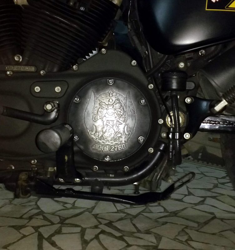 Tenho uma corrente para carteira, formada pelo mascote do Motörhead, o Snaggletooth ou Warpig como alguns chamam. Darren Hooley foi um colecionador inglês que tinha este acesso a banda desde os primórdios. Realmente conhecia a fundo Lemmy, Animal, Clarke e os mais recentes. A coleção dele era impressionante, comparando com a minha, se eu tivesse mil itens, ele tinha uns 5 mil. Ele faleceu em 2010 se bem me recordo. Outro inglês, M. era grande amigo dele. Para terem ideia, vieram ao Brasil assistir a banda. Ele acabou ajudando a esposa do Darren a vender os itens no eBay. Infelizmente o filho dele não se interessou pela coleção do pai. Comprei vários itens pelo eBay, mas o M. me ofereceu vários outros itens por mensagem privada. Um destes itens, esta corrente, era do Darren, que recebeu de presente simplesmente do Philthy Animal Taylor. E que hoje é minha. Já postei nos fóruns e nenhum colecionador tinha conhecimento dela. É um item único, exclusivo mesmo, feito para o Animal. Vários fãs hardcore da banda me contataram querendo comprar. Coincidentemente, outro item dele, mas não exclusivo, está para chegar em breve. A capa do LP Bomber, zerada, para um LP azul, edição limitada lançada pela Bronze. O meu está com a capa em mau estado. Postei em um fórum que estava a procura de uma capa e um francês que foi fotógrafos da banda em vários shows, e no qual já enviei uma série de itens a ele, me ofereceu uma original inglesa, pertencente a coleção do Philthy. Ele adquiriu em um leilão de itens do Animal, após o seu falecimento. Detalhe, só paguei a postagem. Me mandou pura e simples. E o mais legal, tem fotos para comprovar. (N.E.: Marco disse na época da entrevista que a capa estava para chegar, mas no momento da publicação aqui no site ela já tinha chegado e a foto está aí embaixo).