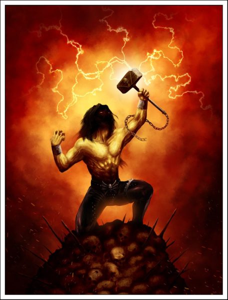 Ferramentas de pedras e ossos foram essenciais para a sobrevivência e evolução de nossos ancestrais; desta forma, sempre estiveram presentes, ‘construindo’ a história da humanidade. O plano lúdico se apropriou dessa circunstância, pois as armas envergadas pelos super-heróis são elementos (de extremo valor) recorrentes nesse universo; representam coragem, força e bravura; precisamos saber manobrá-las para vencer as batalhas: Hector, o paladino sombrio do Hammerfall, exibe uma bela armadura e empunha um majestoso martelo.