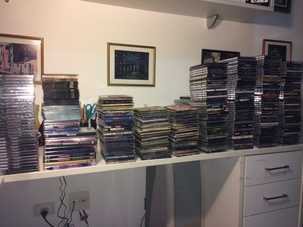 Eu participo de alguns grupos de doação no facebook, e recentemente alguém postou que estaria doando cerca de 700 cd’s, sendo a maioria de bandas nacionais. Quando eu comentei no post que tinha interesse no lote, reparei que umas 15 pessoas já o tinham feito antes de mim. Mesmo assim decidi enviar uma mensagem privada para o doador, explicando que colecionava Cd’s e divulgava bandas nacionais em programas de rádio, podcast e youtube também. Para minha surpresa, o rapaz entrou em contato no mesmo dia, dizendo que eu tinha o perfil adequado para a doação. Combinamos a entrega e no dia seguinte busquei 4 caixas de CD’s! Tratava-se de um promotor de eventos da casa de shows Hangar 110 que estava encerrando atividades. Os CD’s tinham sido enviados pelas próprias bandas ao longo dos anos, para seleção de festivais que eles organizavam. Para minha supresa haviam inúmeros CD’s lacrados, e muitos repetidos também. Do tipo, uns 20 lacrados de uma banda, uns 30 promos de outra… Enfim, também havia muito “lixo” no meio, demos desleixadas, e diversos Cdr’s. Acho que deu para aproveitar uns 400 cd’s, e isso deu um belo upgrade na minha coleção.