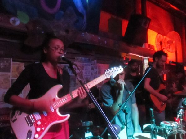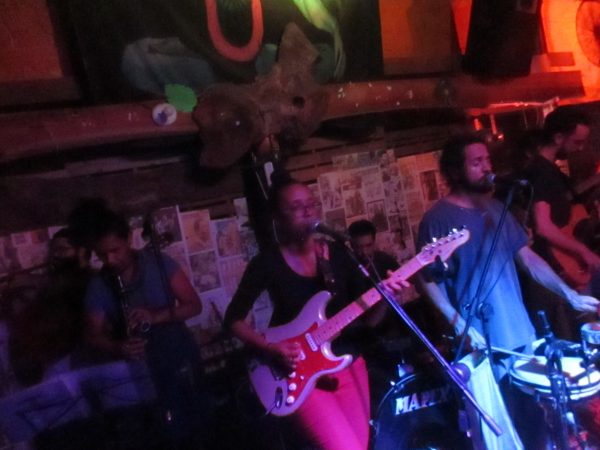Antes, teve a abertura local do grupo Guantánamo Groove. Formado por Gustavo Garoto (guitarra/voz), Yuri ML (baixo/voz) e Vagner Uberti (bateria). Eles estavam acompanhados de um percussionista e um trombonista, que infelizmente não descobri o nome, mas que deram um baita gás para encorpar o som da banda. Fizeram uma bela sonzeira, honrando o groove que tem em seu nome, e levantando a galera. Confesso que senti-me transportado para o início dos anos 70, em algum pequeno bar de Nova Iorque, onde rolavam sons fantásticos de grupo como Chicago Transity Authority ou United States of America.