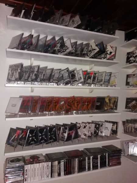 Um número exato difícil dizer, sempre está chegando alguma coisa … rsss. Mas acredito que hoje, incluindo Cd’s, Lp’s, fitas cassetes, DVD’s, VHS e qualquer outro item que envolve METALLICA devem está por volta de 700. Procuro organizar por ordem de lançamentos. O que tenho mais são Cd’s, por volta de uns 400.