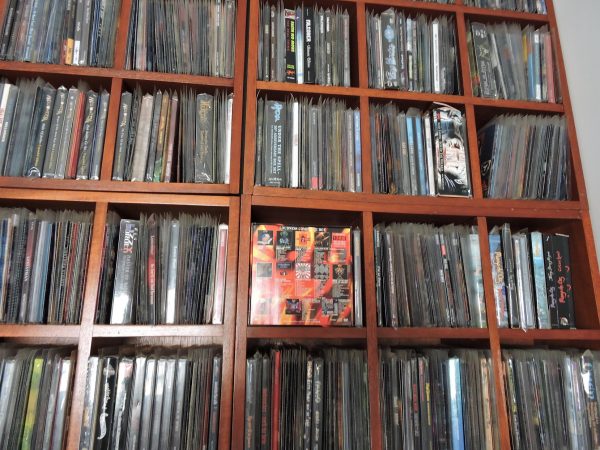 Hahahaha Parei de contar deposi que passou dos 4.000 cd´s. Estou vendendo uma boa parte para deixar lugar para as compras novas. Acho que tenho uns 500 Lp´s. Mais de 400 cassetes [a maioria de gravações, poucos originais]. Uns 2TB de MP3. Uns 200 DVD´s e mais umas 20 VHS.