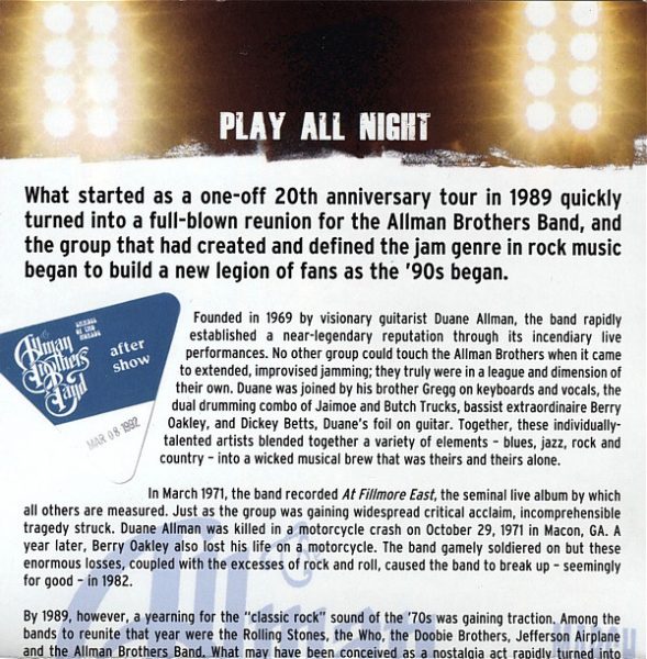 The Allman Brothers Band – Play All Night: Live At The Beacon Theatre 1992 [2014]
