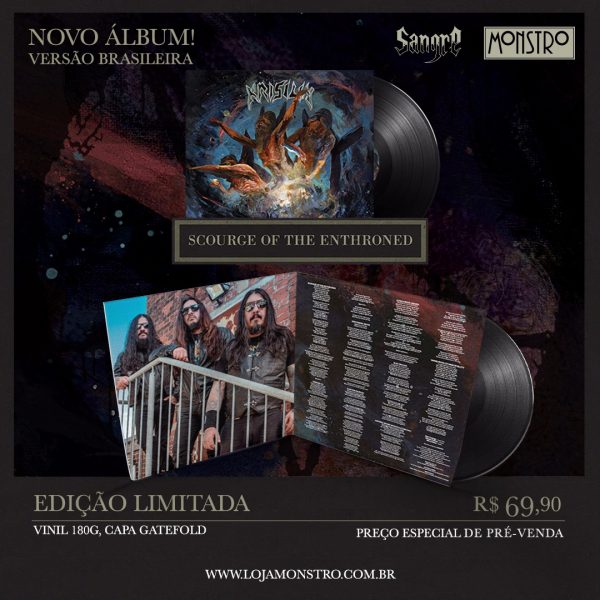 A Monstro Discos/Sangre acabou de anunciar e colocar em pré-venda uma edição em vinil de luxo do Scourge of the Enthroned, o último álbum do Krisiun. O disco, o 11º da carreira dos gaúchos, havia saído apenas na gringa pela Century Media. Gravado no estúdio Stage One, em Bühne, Alemanha, e com produção da própria banda junto com Andy Classen, que já trabalhou com o Krisiun em Conquerors of Armageddon (2000), Southern Storm (2008) e The Great Execution (2011), o novo disco consegue ser ainda mais destruidor que os trabalhos anteriores da banda, ainda que possamos duvidar que isso seja possível. Mas estamos falando do Krisiun e eles são mestres em música extrema.