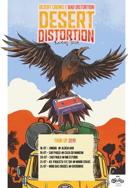 Para completar a excelente fase pós-lançamento do disco de estreia Age of Despair (Monstro Discos/Milo Records), o power trio goiano de stoner rock Desert Crows tem cinco shows confirmados pelo estado de São Paulo. Será a primeira vez da banda no Sudeste. A mini-tour acontece de 18 a 21 de julho. A também goiana Bad Distortion embarca junto neste giro. A rota do Desert Crows por terras paulistas passa por Jundiaí, São Paulo e Mogi das Cruzes. No show de estreia, em Jundiaí (18/7), o palco será o Aldeia Bar, a partir das 20 horas, na companhia das bandas Bad Distortion, Overdrive Luna e Resilienz. Em São Paulo, no dia seguinte (19/7), o role é na Casa do Macha, com Bad Distortion, Bears Witiness e Hammerhead Blues. Ainda na capital, o trio toca dia 20 de julho no M6 Estúdio, a parti das 16 horas, com Casqueteria e Bad Distortion.