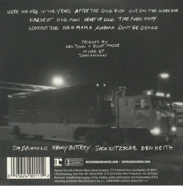 Para os não-iniciados (ou para aqueles que não conhecem tão bem a discografia do bardo canadense), as grandes “pepitas” estão na parte acústica, com uma espetacular sequência de clássicos presentes em Harvest, além de uma linda versão da faixa título de After the Gold Rush e uma rara interpretação ao vivo de “Here We Are in the Years“, do disco de estreia da carreira solo de Neil Young, que leva o seu nome. Para os já convertidos, as jóias estarão na parte elétrica, onde, além das duas faixas já citadas (em versões diferentes daquelas presentes no álbum de 1973, especialmente “Don’t Be Denied“, minha favorita neste novo registro, com quase três minutos a mais que a versão original), estão presentes músicas que só seriam lançadas oficialmente em 1975, no álbum Tonight’s the Night, e raramente interpretadas ao vivo desde então (sendo que “Lookout Joe” sequer faz parte do track list de Roxy: Tonight’s the Night Live, álbum lançado em 2018 e que traz a interpretação ao vivo de quase todas as faixas presentes em Tonight’s the Night), além de uma acachapante versão para “Alabama“, outro clássico presente em Harvest.
