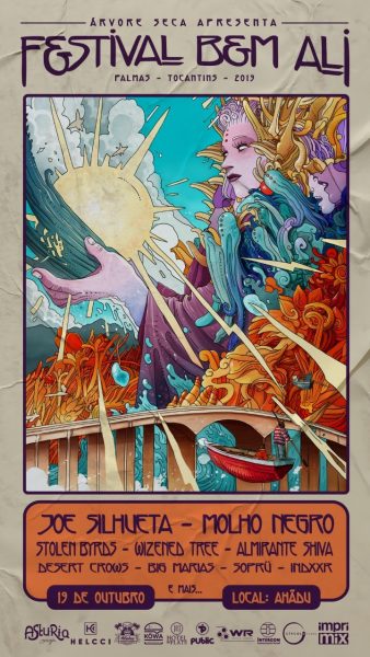 Tudo pronto para a sexta edição do Festival Bem Ali, que acontece já neste sábado, 19 de outubro, no Ahãdu Eventos, em Palmas (Tocantins). Trata-se da mais plural das edições, com bandas de stoner, psicodélico, rock n’ roll, alternativo, trap e até com pegada de música brasileira. A realização é da produtora Árvore Seca, uma das mais ativas e culturalmente engajadas da região Norte. Joe Silhueta, Molho Negro, Stolen Byrds, Wizened Tree, Almirante Shiva, Desert Crows, Big Marias, Soprü e Indxxr são as bandas sobem ao palco do Bem Ali deste ano, que também abre espaço, como sempre, para atividades relacionadas a comportamento (flash tattoos), gastronomia e artes em suas mais diversas manifestações, como graffiti e arte circense. Os ingressos já estão no último lote, a R$ 45. Em Palmas, existem quatro pontos de venda de ingressos físicos.