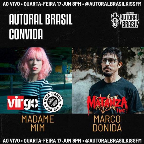 No último dia 17 de junho, foi realizada a live “Autoral Brasil Convida”, onde o músico e fundador do Matanza Inc, Marco Donida, foi entrevistado por Madame Mim, no instagram oficial do programa que é produzido pela Kiss FM. O bate-papo teve como tema abordar toda a trajetória do guitarrista, que é considerado um dos mais importantes do movimento Rock/Metal do Brasil e, falar sobre o atual momento vivido no mundo e o que se esperar do futuro para o Matanza Inc. Para acompanhar a live, acesse e siga o Instagram do Autoral Brasil Kiss FM pelo link .