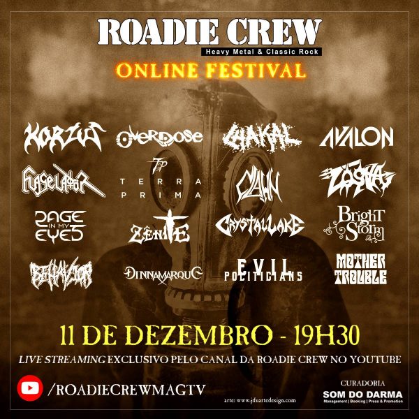 A revista Roadie Crew, em parceria com a produtora Som do Darma, apresentou na sexta-feira, dia 11 de Dezembro, às 19h30, a nona edição do “Roadie Crew – Online Festival”. O evento online, realizado mensalmente, deu continuidade à sua missão de celebrar e promover o trabalho das bandas brasileiras e fortalecer a cena do heavy metal nacional, sempre com transmissão “Streaming-Live” exclusiva pelo canal oficial da Roadie Crew no Youtube. Até aqui, quase 150 bandas passaram pelo festival, e centenas de outros grupos aguardam para se apresentarem em futuras edições. Isso tem tornado evidente que o Brasil tem, atualmente, quantitativa e qualitativamente, uma das melhores cenas de heavy metal do mundo, com muitas bandas clássicas e também novas promessas.