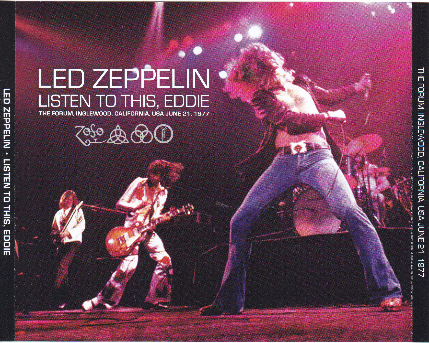 Esse bootleg retrata as loucuras da turnê americana de 1977, recheada de episódios insólitos e muita loucura. A banda toda entra no palco muito entrosada e com muito gás – “The Song Remains the Same” é tocada bem mais rápida no início do que o normal e a plateia fica enlouquecida! Robert Plant canta muito bem o tempo todo e John Bonham mostra sua evolução como baterista ao longo dos anos, trazendo um fraseado muito criativo, devidamente respondido pelo baixo de John Paul Jones, que nessas alturas adotou o modelo Alembic como sua identidade sonora. Só por essa abertura, já vale o show e o bootleg. “Sick Again” começa como “The Rover”, mas Jonh Paul Jones logo puxa a faixa para uma entrada meio insegura de Jimmy Page, que logo retoma as rédeas da história e manda brasa em um fantástico solo. “No Quarter” é apresentada em versão quilométrica, na qual John Paul Jones se mostra como um tecladista de respeito, tanto no piano elétrico quanto no acústico. Robert Plant é outro que brilha na canção, seja pela interpretação, seja pelos longos agudos. “Heartbreaker” é resgatada em grande estilo, com Plant mandando ver e Jimmy Page soltando faísca. A emenda de “Whole Lotta Love” com “Rock n’ Roll” fecha com grande estilo, onde a banda mostra seu poder de fogo.