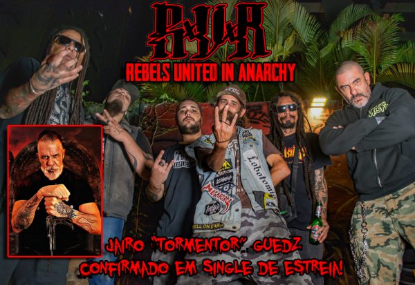 RxUxA (Rebels United In Anarchy), a mais nova banda paulistana de Crossover formada por atuais e ex-integrantes de bandas como Lobotomia, Sensimilla Dub, Grinders, Gritando HC, Megaforce e Invasores de Cérebro, já está em estúdio gravando material próprio para o que será seu álbum de estreia. O primeiro lançamento será o single “Human Race Extermination” e nele a banda contará com as participações mais que especiais de Henrique Fogaça (Oitão) – também renomado chef de cozinha e um dos apresentadores do programa MasterChef Brasil na Rede Bandeirantes de Televisão – nos vocais, e a lenda do Metal nacional e grande amigo de todos na banda, Jairo “Tormentor” Guedz (ex-Sepultura, ex-The Mist e atual The Troops Of Doom) gravando partes de guitarras. Assista vídeo de Jairo “Tormentor” Guedez.