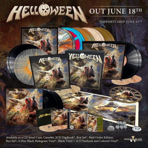 Lá fora, Helloween saiu em diferentes formatos, como o box com dois LPs, dois CDs mais um livreto de 36 páginas, LPs em diversas cores (marmorizada em branco e marrom, transparente, amarelo, roxo, laranja, picture disc e ainda as versões inkspot e glow in the dark), além de diversos formatos de CD e também em cassete, e daí deixo uma pergunta: porque a versão nacional (lançada pela Shinigami, uma das poucas gravadoras que ainda tem a “bravura” de lançar itens físicos no mercado nacional) não incluiu as faixas extras da edição especial importada?