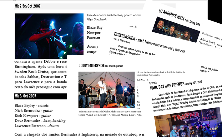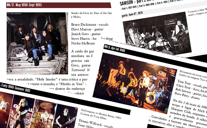Ele estava certo. E eu cada vez mais próximo de perceber que ainda estava no início de um enorme projeto; ainda havia muito o que ser feito além de mudar o nome (alterado para MAIDEN LEGACY). Eu o fiz passar por uma reestruturação total. A principal delas foi a divisão por décadas, depois as indexações, a retirada de assuntos supérfluos, e finalmente a divisão de algumas bandas que passavam por estágios de diversos tipos, e simplesmente não podiam ser descritas de forma contínua, como foi o caso de Bruce Dickinson, o próprio Iron Maiden, Killers, Samson, Praying Mantis, Battlezone, entre outras.