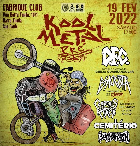 O Kool Metal Fest terá mais uma prévia com jeito do evento principal em maio (no dia 29 no Carioca Club, com Belphegor Ratos de Porão, Krisiun, Crypta, entre outras). Em fevereiro, o Pre-Fest, agendado para 19/2 no Fabrique Club, em São Paulo, serão cinco shows, todos eles especiais do DFC, Eskröta, Cerberus Attack, Cemitério e Blasthrash. Os ingressos estão à venda – primeiro lote promocional por R$ 30!