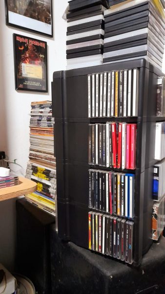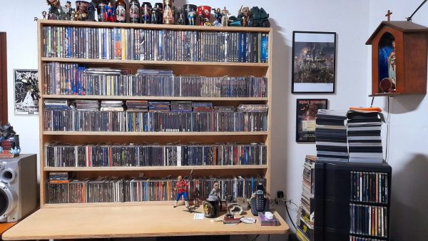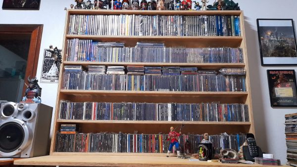 A grande maioria é composta por CD´s. Nos anos 90, tinha muitos vinis, mas com a chegada do CD, assim como muitos, passei a trocar os vinis por CD´s. Coisa que hoje me arrependo muito. Em se tratando de números, hoje tenho cerca de mil CD’s, cento e trinta e nove DVD’s / Blu-rays, setenta e quatro vinis e quatro fitas K7.