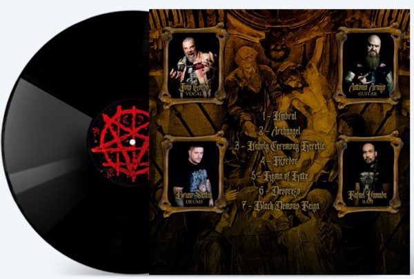 Com sete faixas espalhadas em pouco mais de quinze minutos, o EP não é só “porradaria” e “velocidade acelerada” como muitos outros lançamentos do estilo, os quais, a meu ver, muitas vezes se tornam maçantes e complicados de ouvir por falta de variações. Pois “variações” musicais são algo que aparecem bastante ao longo da audição de Unholy Ceremony Heretic. Ainda que “Archangel” (faixa de abertura – após a “calma” intro “Umbral” – e primeiro single divulgado pelo projeto) comece a toda velocidade, existem alguns momentos mais “lentos” e até as famosas “paradinhas matadoras” ao longo de sua execução. Quase o mesmo ocorre na agressiva “Hymn of Hate” e na própria faixa título (cujo começo acústico pode até enganar aos mais incautos), a qual conta com um curto mas eficiente solo do guitarrista Chris Cannella (à época da gravação, ainda membro do Deicide). Outro convidado especial do EP é o tecladista João Nogueira, do The Claypool Lennon Delirium, que compôs e gravou a curta vinheta “Mordor”, climática e cheia de efeitos “especiais” de suas teclas.