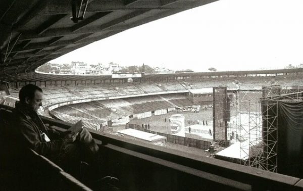 Neil Peart relaxando no antigo Estádio Olímpico, momentos antes do show de 20 anos atrás