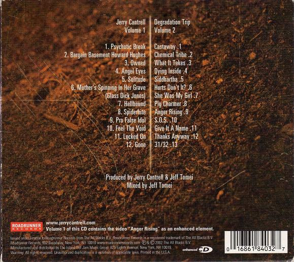 Este dia 26 de novembro de 2022 marca os vinte anos do lançamento de um dos álbuns mais inusitados que o chamado “movimento grunge” legou ao mercado musical: a versão “completa” (com o subtítulo Volumes 1 & 2) do disco Degradation Trip, segundo registro da carreira solo do vocalista e guitarrista Jerry Cantrell (também do Alice In Chains), o qual já havia sido disponibilizado no mercado em sua versão “simples” (ou “incompleta”) em junho de 2002, mas que ganha uma dimensão completamente diferente quando ouvida em sua forma integral, imaginada anteriormente pelo artista, como ocorre nesta versão, inicialmente lançada em uma edição em CD duplo nesta mesma data daquele mesmo 2002.