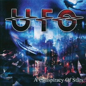 O 21° álbum do UFO chegou às lojas em 23 de fevereiro de 2015, e trouxe Rob de Luca finalmente efetivado como membro oficial do grupo. O garoto chega compondo duas canções ao lado do titio Mogg, a grudenta “The Killing Kind”, ótima para comear um show dessa nova fase, e “One and Only”, canção que fácil nos coloca em Mechanix ou The Wild, The Willing & The Innocent, com um diferencial no solo de Moore. Raymond também faz sua colaboração, através de “The Real Deal”, faixa suave que pode ser considerada a “balada” deste disco, apesar de não ter nada de balada, e marca presença com o hammond durante a envolvente “Precious Cargo”, faixa com um refrão bastante grudento e com Moore utilizando escalas jazzistícas com soberania em seu solo final. Destaco que a produção do disco é bastante crua, e a audição parece nos colocar exatamente na sala de ensaios do quinteto. As demais composições são da dupla Moore/Mogg, e claro, os caras estão afiados. Mogg tem uma performance vocal exuberante na ótima “Rollin’ Rollin'”. Já Moore traz o uso de slide na ótima “Ballad of the Left Hand Gun”, manda ver em arpejos durante “Devil’s in the Detail”, e solta os dedos na pancada “Messiah of Love”, com boa participação também da cozinha de Luca/Parker. Destaques ainda para o peso de “Run Boy Run” e a épica “Sugar Cane”, faixa com um climão oitentista muito interessante, onde os teclados e sintetizadores predominam e Moore dá um show a parte em um belo solo. Há uma edição limitada em CD que traz como bônus “King of the Hill”, faixa com um ótimo riff de guitarra, inspirações bluesy e mais uma baita performance vocal de Mogg. Durante muito tempo, The Visitor foi meu preferido deste período, mas reouvir A Conspiracy of Stars para escrever este texto me fez mudar de visão, e certamente, temos aqui um grande disco dos caras. Lembrando que o mesmo atingiu a quinquagésima posição nas paradas britânicas.