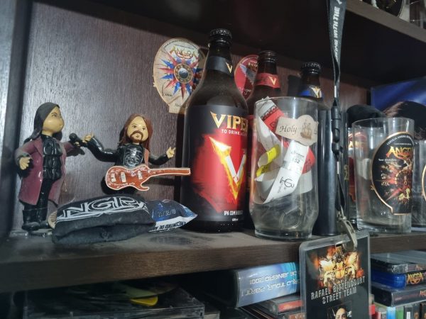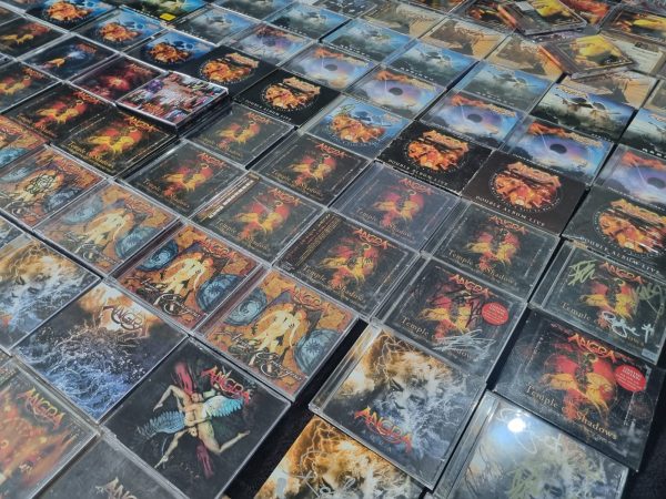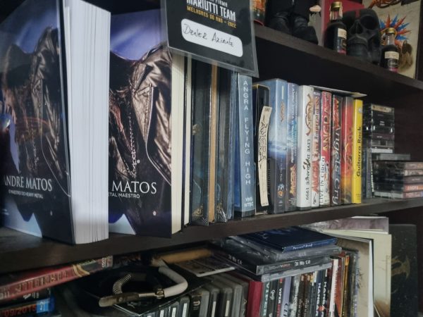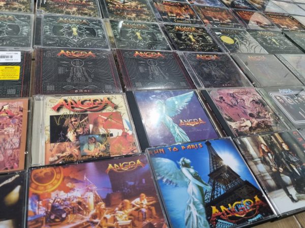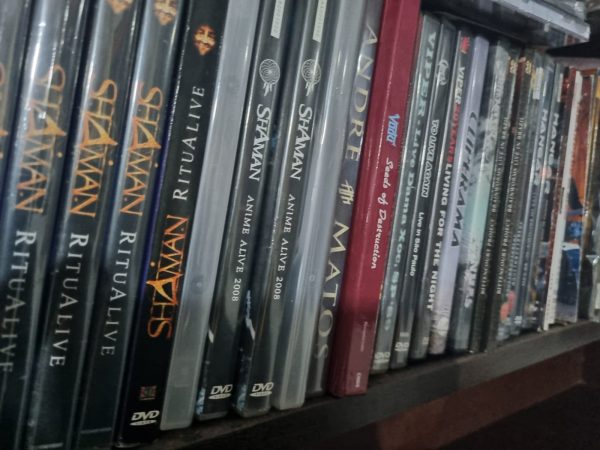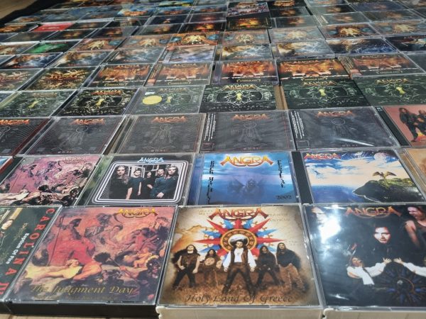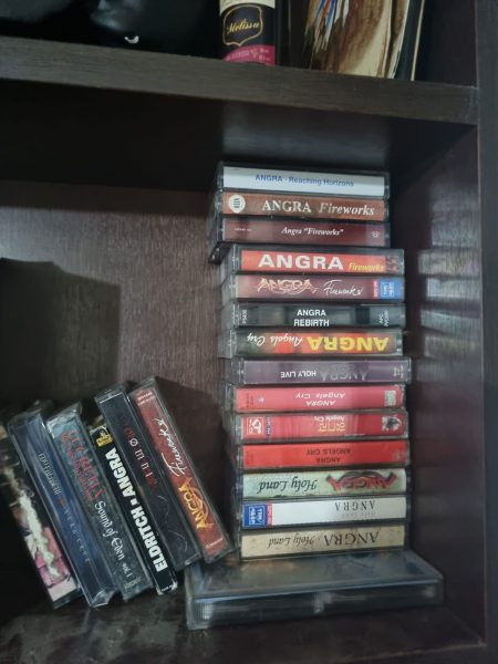 Minha coleção e baseada mais no cenário nacional. Angra é a banda a qual mais tenho itens, dos mais normais aos mais inusitados e em constante crescimento, seguido de Andre Matos, Viper, Shaman e Edu Falaschi. Aí vem Dr.Sin, Engenheiros, Velhas Virgens, Sepultura, Korzus, Hangar, Dance of Days. Do internacional, Metallica, Kiss e Sabath estão no topo. Vamos aos números. Angra tenho 272 cds entre Oficiais, singles e Bootlegs, 19 fitas k7, 25 dvds, 3 Bluray, 11 Vhs, 7 Box, 5 lps sendo um Angel’s Cry Promo e umas 100 camisetas. No geral tenho perto de 1500 cds. Andei tirando muitos da coleção e dando ênfase ao nacional.