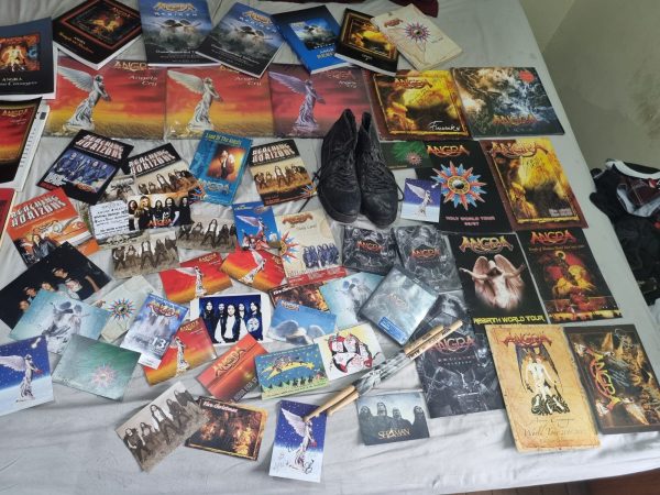 Revistas, impressos, jornais, camisetas relacionados ao Angra em sua maioria.