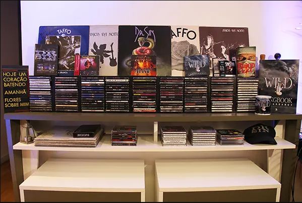 Tenho todo tipo de item na minha coleção: CDs, LPs, DVDs, chaveiro, boné, K7, Demos, bootlegs, documentos, livro, songbook, credenciais, letras escritas à mão (originais), baquetas, palhetas e por aí vai…