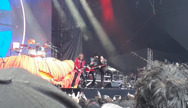 A banda subiu ao palco com jogo ganho. Nitidamente, a maior parte do estádio – que segundo post da banda, atingiu 60.000 espectadores – estava lá para se despedir do quarteto mascarado. Tínhamos várias pessoas com o rosto pintado igual ao dos músicos, um exército de camisetas do Kiss por todo o local. Nas bancas de merchandising, todas as vezes que passei por perto, o trecho com maior aglomeração era o de produtos do Kiss. Por mais que o Helloween tenha levado um bom público, a maior parte estava ali realmente para os mascarados.