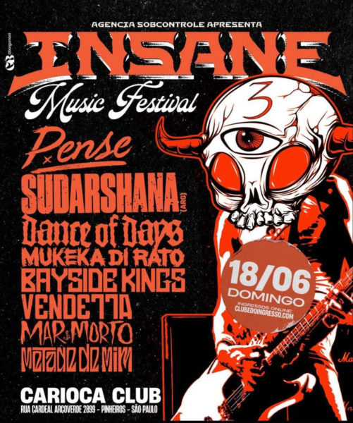Um dos eventos mais enérgicos e esperados da música independente, especialmente para os fãs de rock, punk e hardcore, o Insane Music Festival chega à terceira edição neste domingo, 18 de junho, em São Paulo, no Carioca Club. As atrações são Dance Of Days, Sudarshana (Argentina), Mukeka Di Rato, Pense, Bayside Kings, Metade de Mim, Mar Morto e Vendetta. Foi no 2º Insane Music Festival que a clássica banda capixaba Mukeka di Rato, cujo baixista/vocalista é o ilustre Fabio Mozine (também da Laja Records), fez seu retorno aos palcos em 2022. E tem repeteco no 3º Insane que esta importante banda do hardcore nacional vai fazer mais um show em solo paulista para divulgar o elogiadíssimo novo disco Boiada Suicida.