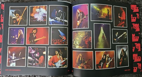 Por fim, como não destacar a própria apresentação da box? Os oito CDs (acomodados numa capa) são ilustrados pelo clássico selo da Vertigo com os discos voadores de Roger Dean, e o livreto (48 páginas em capa dura) traz dezenas de fotos, como no LP original. Embora tiradas em diferentes apresentações, as fotos são apresentadas na ordem das músicas que a banda estava tocando quando foram tiradas. O texto narra a história da gravação do disco e traz memórias de Gorham, Downey e Robertson, bem como do produtor Tony Visconti, falando também da sua recepção pelo público e mídia, além de trazer um breve histórico do grupo. Os problemas de Robertson com Phil Lynott são detalhados ao longo do texto, e fica nítido que Scott Gorham adorava trabalhar com o escocês nervosinho e o defendeu enquanto pôde. Também há vários posters e anúncios de shows reproduzidos no livreto, tornando-o muito interessante. O título e a foto de capa são também discutidos: originalmente seria chamado apenas Thin Lizzy Live, ganhando o Dangerous para marcar presença em relação a bandas punk como The Clash; a capa seria uma foto de toda a banda, mas na hora de decidir, todos concordaram que a foto de Phil estava perfeita – embora ele não tenha gostado da ideia de aparecer em destaque.