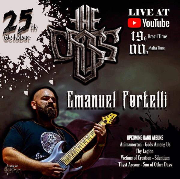 Seguindo a saga de entrevistas com os músicos que participarão do seu próximo álbum, chegou a vez do THE CROSS falar com exclusividade com o guitarrista Emanuel Portelli (Thy Legion, Victims of Creation, Hemplifier, ex-Martyrium e outros). Em um bate-papo descontraído de aproximadamente 45 minutos, o músico comentou sobre sua carreira musical, shows pela Europa, influências e muito mais. Assista agora. As lives semanais estão sendo transmitidas diretamente pelo canal oficial do THE CROSS no YouTube. Fique ligado, inscreva-se e ative o sininho para receber todas as notificações e aproveite para conferir também a conversa com a lenda do Power Metal norte-americano Jack Starr.