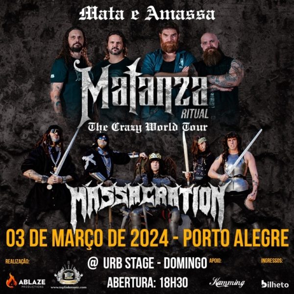 De um lado, o rock áspero, sujo e agressivo do Matanza Ritual. Do outro, o heavy metal clássico e épico do Massacration. Esses dois universos, quando se encontram, são capazes de mover multidões ávidas por riffs de guitarra furiosos e vocais marcantes. É isso que vai acontecer em 2024, quando esses dois os grupos se unem na Mata e Amassa – The Crazy World Tour.