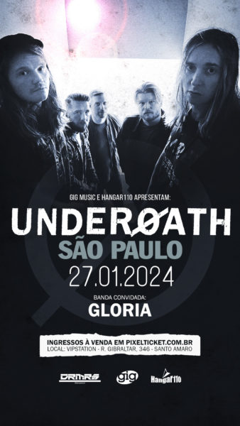 Com uma sonoridade dinâmica, que de forma inteligente combina agressividade e melodia, o Underoath, considerada banda pioneira do metalcore moderno, está de volta a São Paulo já neste início de 2024. O show – único no Brasil – acontece dia 27 de janeiro, um sábado, no Vip Station. A produção é da Gig Music e Hangar 110. Ingressos à venda aqui. A abertura fica com o Glória, que recentemente participou como banda convidada de um show especial do NX Zero, no estádio Allianz Parque, na capital paulista.