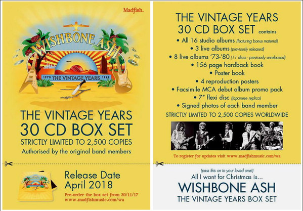 A tiragem inicial se esgotou rapidamente, e hoje em dia no Discogs exemplares à venda chegam a custar mais de R$ 10.000,00 (sem as taxas!). Nos trinta anos após o período coberto pela box, o Wishbone Ash lançaria uma quantidade enorme de discos ao vivo e vários de estúdio, alguns bons (como Illuminations e Blue Horizon) e outros bem fracos (como Trance Visionary), e continua por aí, com Andy Powell carregando o legado consigo.