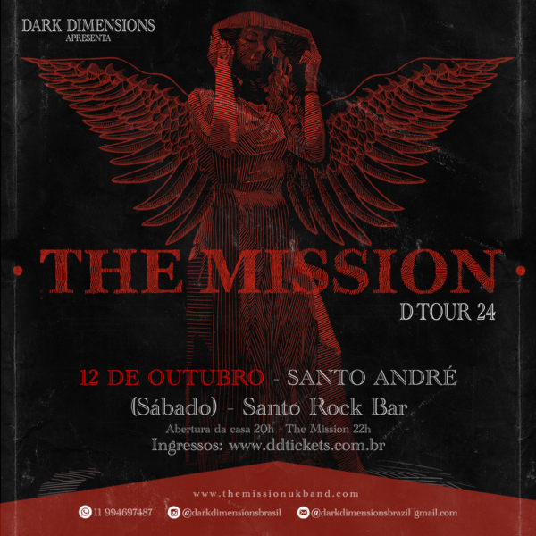 Devido à grande procura por ingressos para o show em São Paulo, no dia 13 de outubro, da lendária banda britânica de Gothic Rock e Post-Punk dos anos 80, The Mission, a produtora Dark Dimensions orgulhosamente anuncia uma apresentação extra no dia 12 de outubro, no Santo Rock Bar, em Santo André/SP. Informações e ingressos.