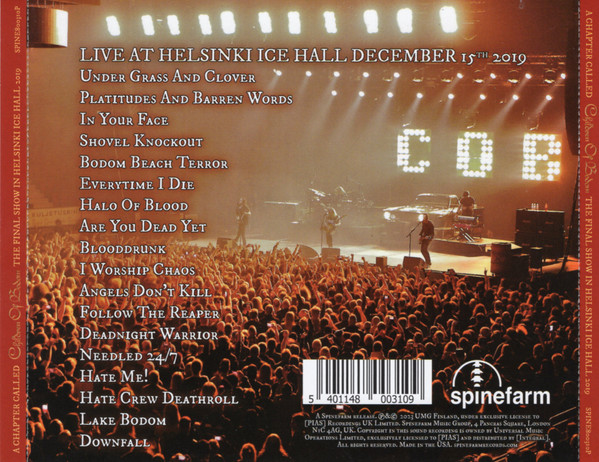 A banda finlandesa Children Of Bodom realizou seu último show no dia 15 de dezembro de 2019, na capital de seu país natal, Helsinque. A apresentação teve seu áudio lançado quatro anos depois, em dezembro de 2023, com o nome A Chapter Called Children Of Bodom (Final Show In Helsinki Ice Hall 2019), disco que saiu nas versões em vinil duplo (lá fora) e CD (sendo que a edição nacional foi lançada pela união das gravadoras Wikimetal Music e Oporto Da Música), além das hoje obrigatórias “plataformas digitais”. Em novembro daquele ano, uma nota oficial havia sido divulgada afirmando que esta seria a última performance do grupo, com a banda se separando logo em seguida. Apesar disto, os membros do quinteto – a saber, o vocalista/guitarrista Alexi Laiho (morto em 2020, e para quem o disco é dedicado), o também guitarrista Daniel Freyberg, o tecladista Janne Wirman, o baixista Henkka Seppälä e o baterista Jaska Raatikainen – fizeram uma apresentação que, pelo que se ouve na gravação, foi digna da carreira do grupo, com o lançamento do disco sendo, como declarou Freyberg em uma nota publicada no site Blabbermouth, em outubro de 2023, “para aqueles que compareceram, uma viagem no tempo de volta àquele momento. E para aqueles que não foram, uma oportunidade de vivenciar como o capítulo chamado Children Of Bodom foi encerrado“. Na mesma nota, Wirman disse que “foi surreal estar naquele palco do Helsinki Ice Hall, pois eu sabia que provavelmente nunca mais tocaria com os caras nem me apresentaria para os incríveis fãs“, enquanto Raatikainen acrescentou que “quando subi no palco, me senti calmo, provavelmente porque não sentia mais a necessidade de provar nada, mas sim de curtir a música e a presença de todos os fãs. Eu estava muito grato por ter feito parte de tudo isso, sabendo que nossa música não desapareceria mesmo se nunca mais tocássemos juntos“. A plateia presente, aparentemente, também fez bem sua parte, embora sua participação não apareça com tanto destaque assim na gravação (pelo menos durante as canções).