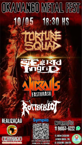 Após uma estreia de sucesso no ano passado, o Okavango Metal Fest retorna em 2025 para consolidar seu nome como um dos mais importantes festivais de metal do litoral paulista. Com um lineup de peso, o evento reunirá as renomadas bandas Siegrid Ingrid, Andralls e Torture Squad – três das maiores potências do thrash-death metal brasileiro e latino-americano – e mais a banda convidada Rottenblot (abertura) prometendo uma noite histórica e inesquecível para os headbangers da região e além.